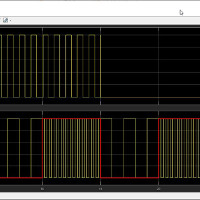 On the left part of the schema, we put a Squarewave generator to simulate the button signal. This was done with a sinewave generator and a comparator to set a signal to true when sinus is positive and false otherwise.